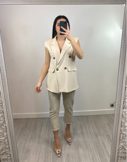 Ensemble Blazer sans manche Beige